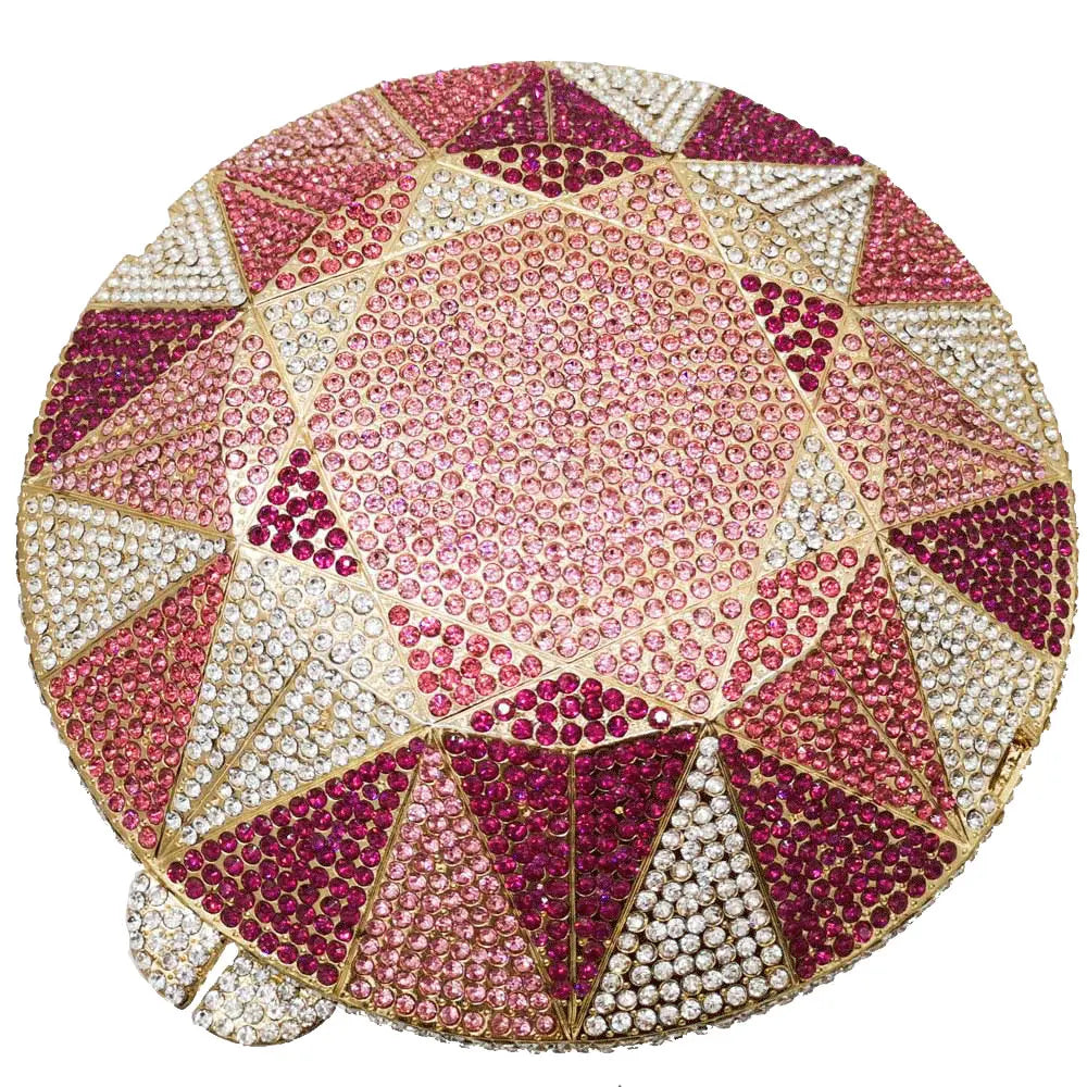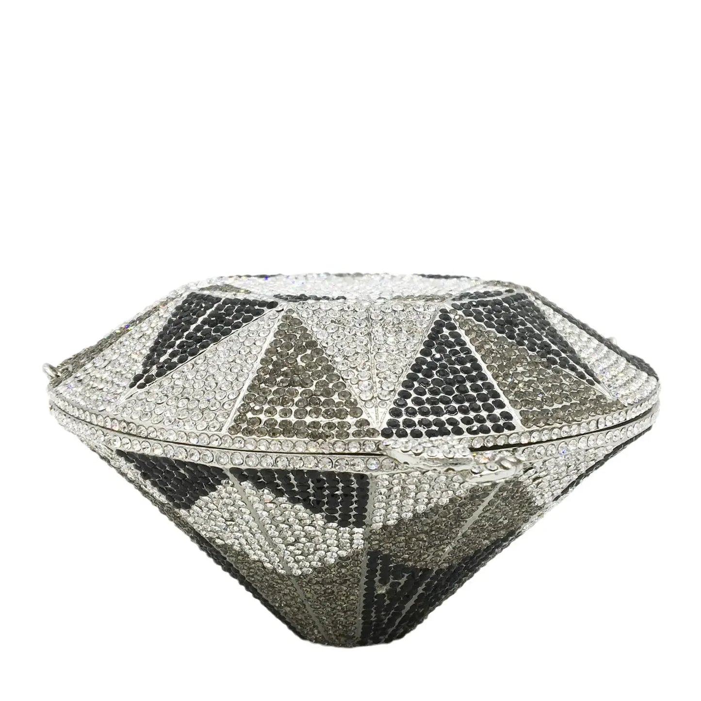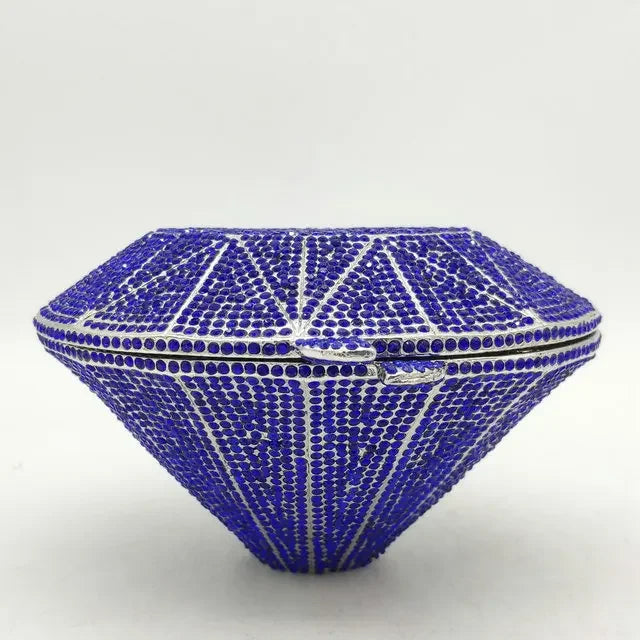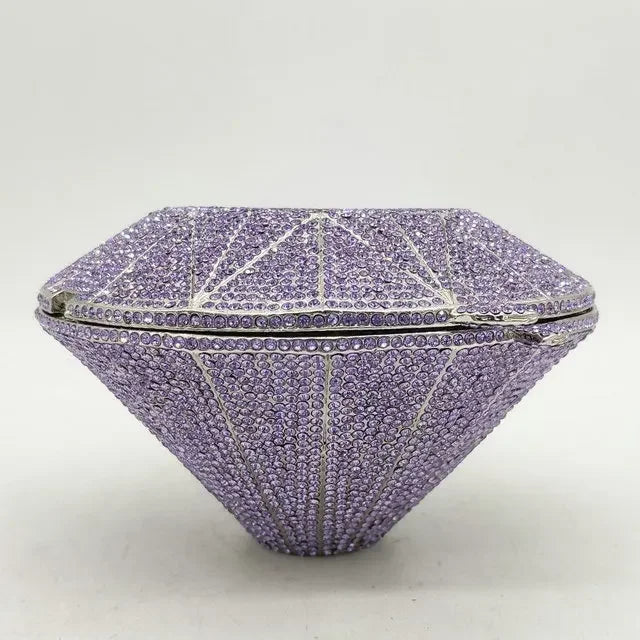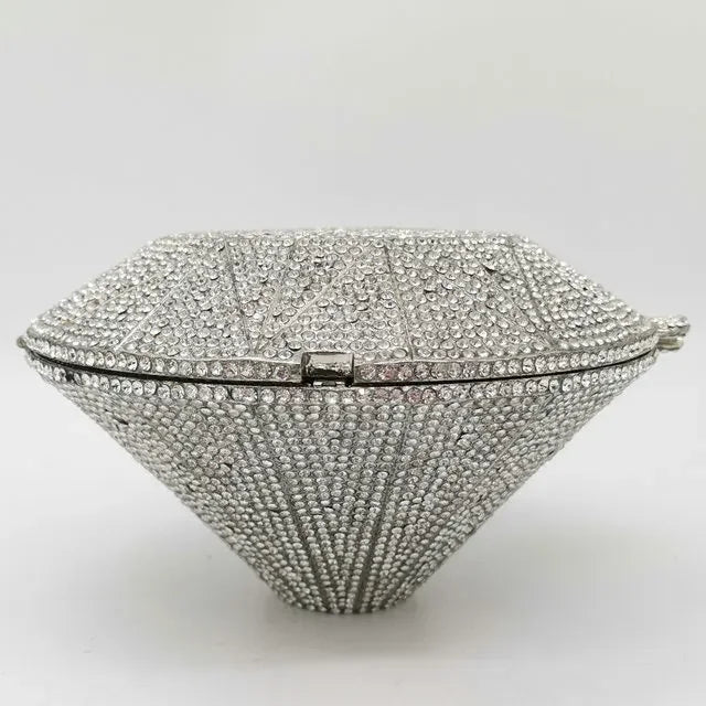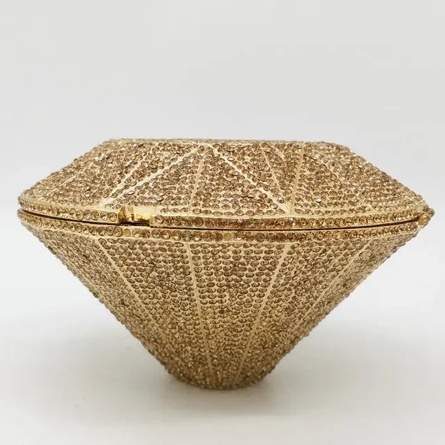 Diamond Shape Crystal Evening Clutch Bags Wedding Purses Party Handbag, elevate your evening ensemble with this exquisite diamond-shaped crystal clutch. Crafted with a lustrous hard crystal exterior that catches the light beautifully, it pairs perfectly with formal attire for weddings, galas, and special celebrations. The sumptuous gold interior provides a luxurious finishing touch while offering practical storage for essentials. A refined accessory that transforms any occasion into a moment of understated elegance.